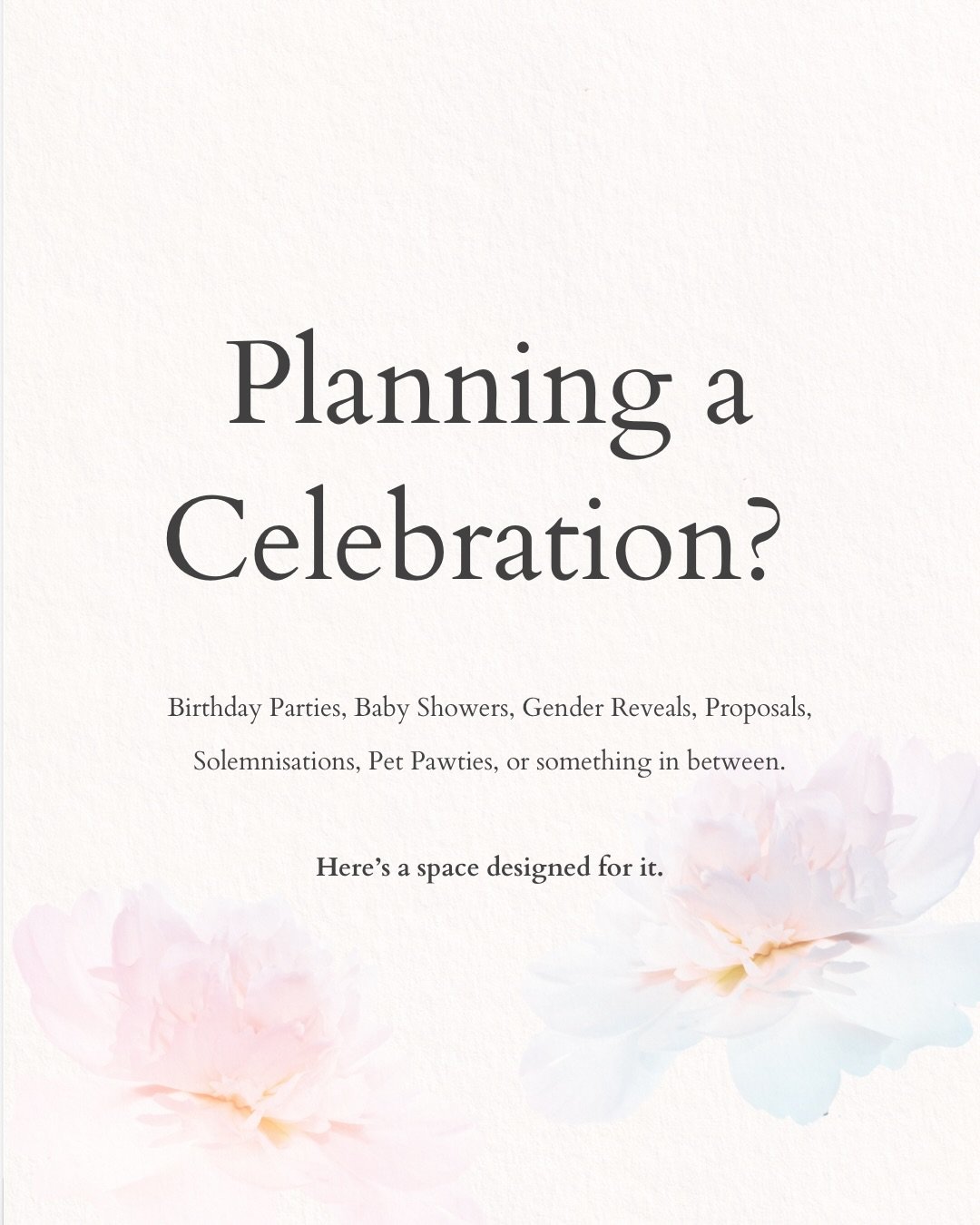 For your next Birthday Party, Wedding Solemnisation, Baby Shower, Bridal Shower, Photoshoot, Workshop, Popup, and more.