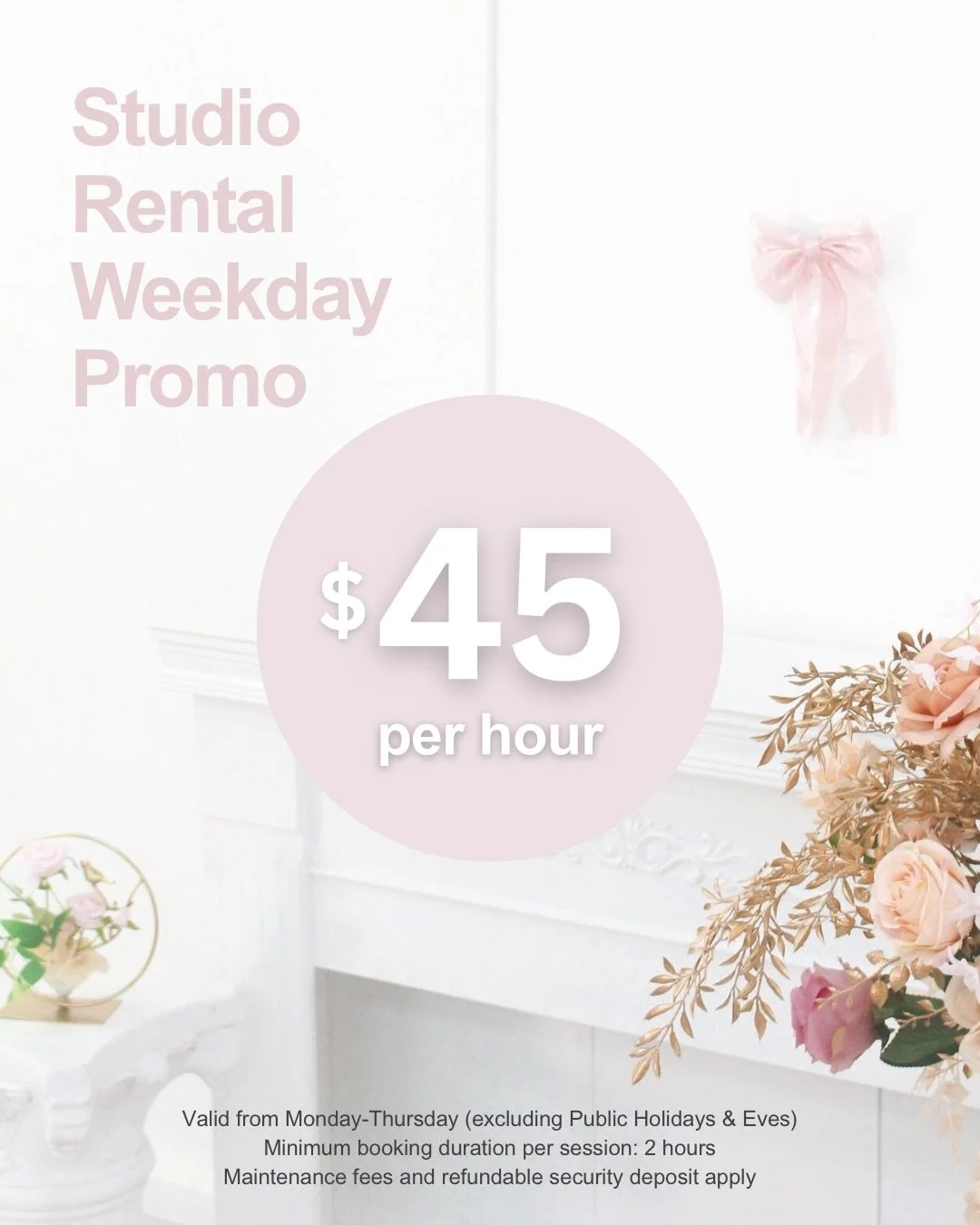 Equipped with essential photography equipment and a range of dreamy backdrops and props, enjoy full access to our studio space that easily adapts to any photoshoot or creative project โ whether itโs a portrait session, brand campaign, or social media content creation.